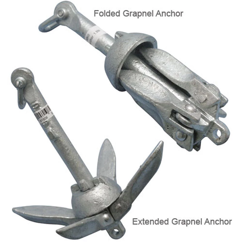 Ideal for small boats and dinghies, it folds and unfolds in seconds and stores compactly. Retrieving line ring included. Galvanized steel.