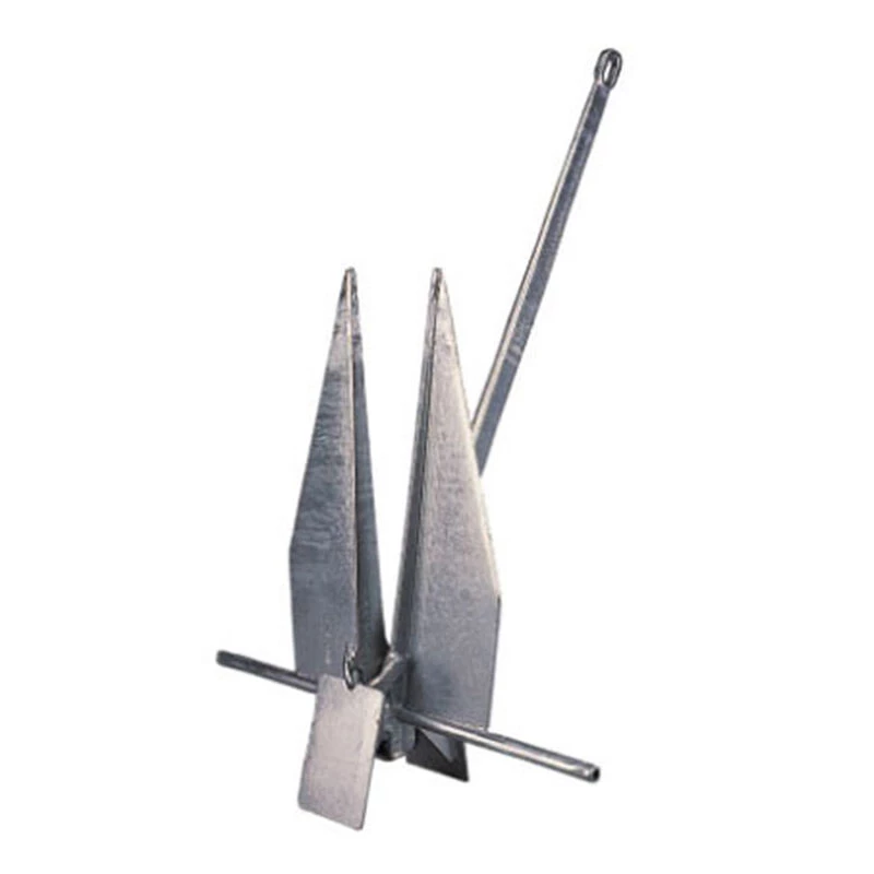 Extremely tough, durable anchor built from high tensile steel for excellent holding power in sand and mud bottoms. The shank is drop-forged for added strength and rests on special reinforcing yokes inside angled crown plates to assure a 32° shank angle. T-shaped flukes are constructed of Junior I-beam steel for greater strength and stability and beveled for faster, deeper penetration of bottom substrate. Hot-dip galvanized for long-lasting corrosion resistance.