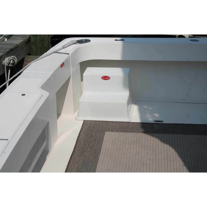 The more you jump on and off the boat, the better the chances of rolling an ankle or bruising a shin. Eliminate these risks by adding a Todd Double Step and make climbing on and off your boat convenient and safe. These sturdy Todd dock steps are constructed using a light weight UV stable polyethylene. Treads have deep channels molded into the top divert water and provide solid traction. A large flanged perimeter allows the steps to be secured to the dock and adds rigidity to the base without adding significant weight. For added stability, an optional handrail is available. Todd steps can be stacked to reduce storage space. Don’t let getting on and off your boat take a toll on your body, make it convenient by using a Todd Double Step.