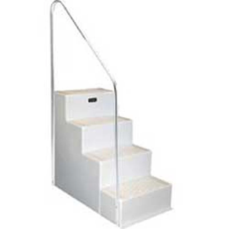 The more you jump on and off the boat, the better the chances of rolling an ankle or bruising a shin. Eliminate these risks with a Todd Quad Step and make climbing on and off your boat safer and easier. These sturdy Todd boarding steps are constructed using a lightweight UV stable polyethylene and are ideal for larger boats with high topsides. Treads have deep channels molded into the top divert water and provide solid traction. A large flanged perimeter allows the steps to be secured to the dock and adds rigidity to the base without adding significant weight. The included anodized aluminum handrail provides additional stability and safety. Todd steps can be stacked to reduce storage space. Donβt let getting on and off your boat take a toll on your body, make it easy with a Todd Quad Step.