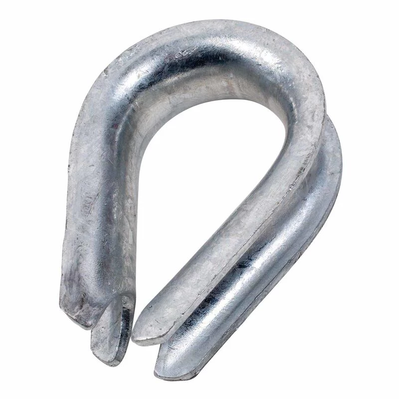 Thimbles are a critical component of spliced eyes in anchor rodes, mooring lines and other high load lines with spliced eyes. They relieve the strain on three strand and braided lines by maintaining a smooth radius and provide a metal chafe guard for shackles, metal eyes and other fixed connections. Our hot dipped galvanized thimbles meet national specifications and are available in a wide range of sizes for most line diameters.