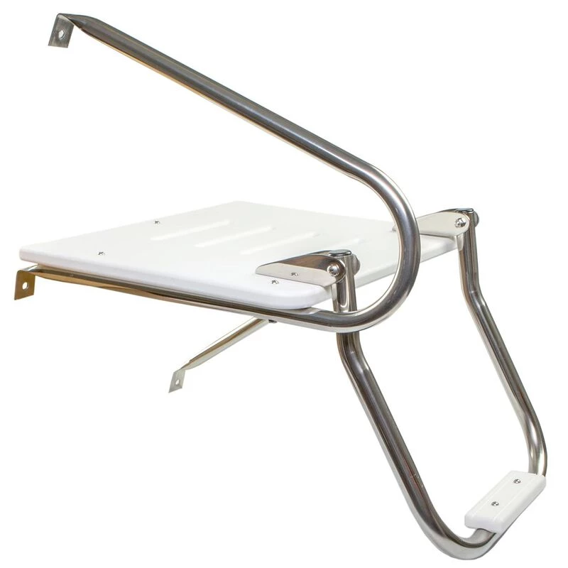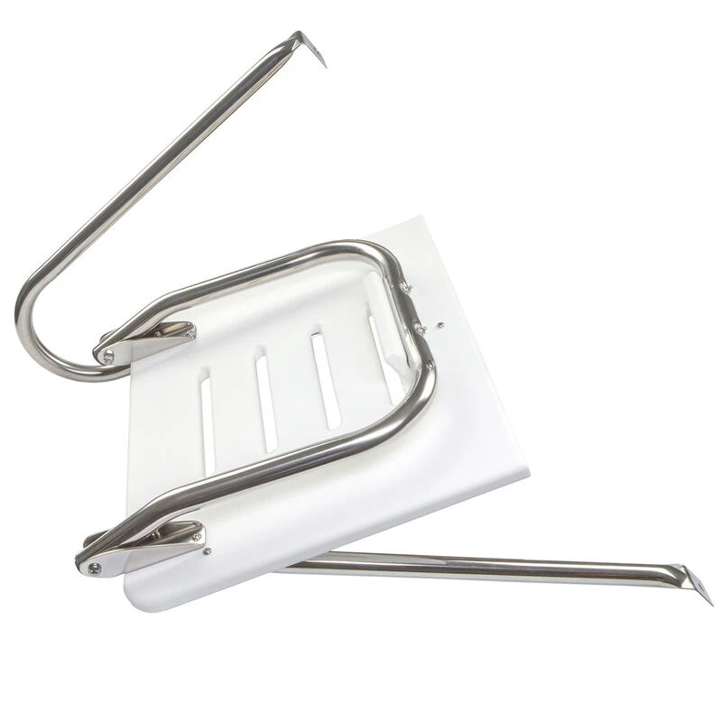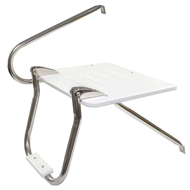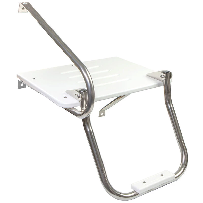 White poly swim platform with 304 stainless steel hardware for boats/with outboard motors.